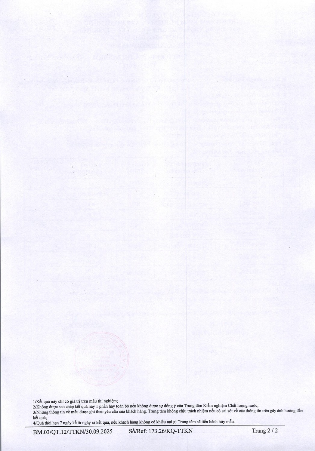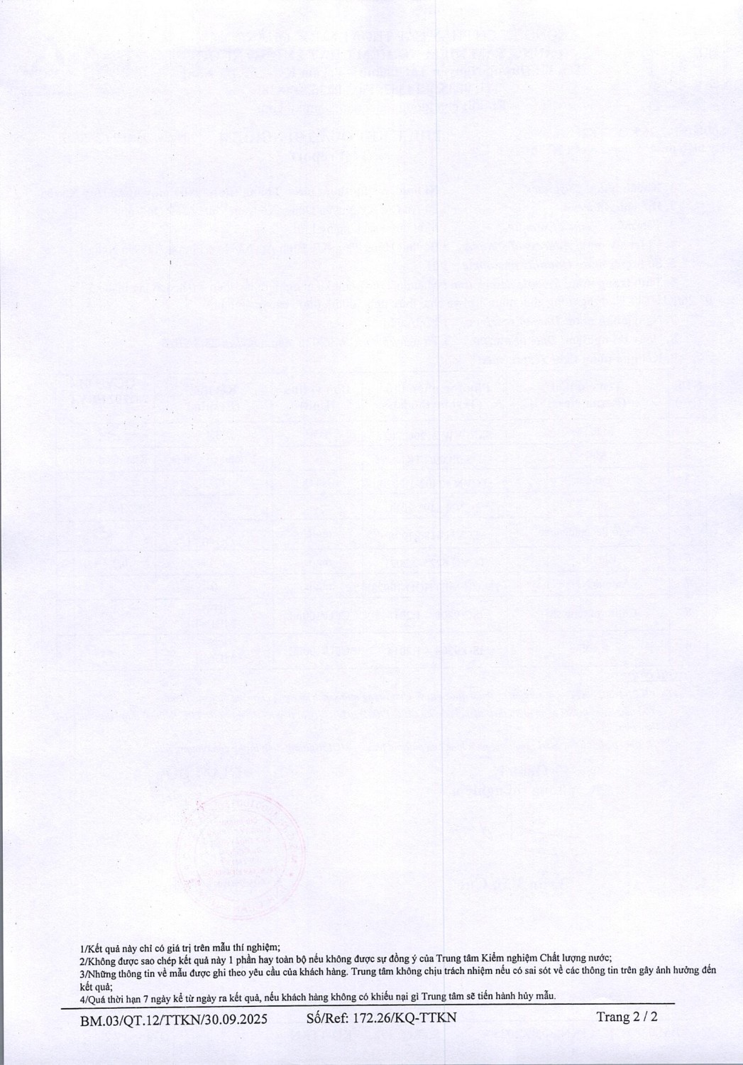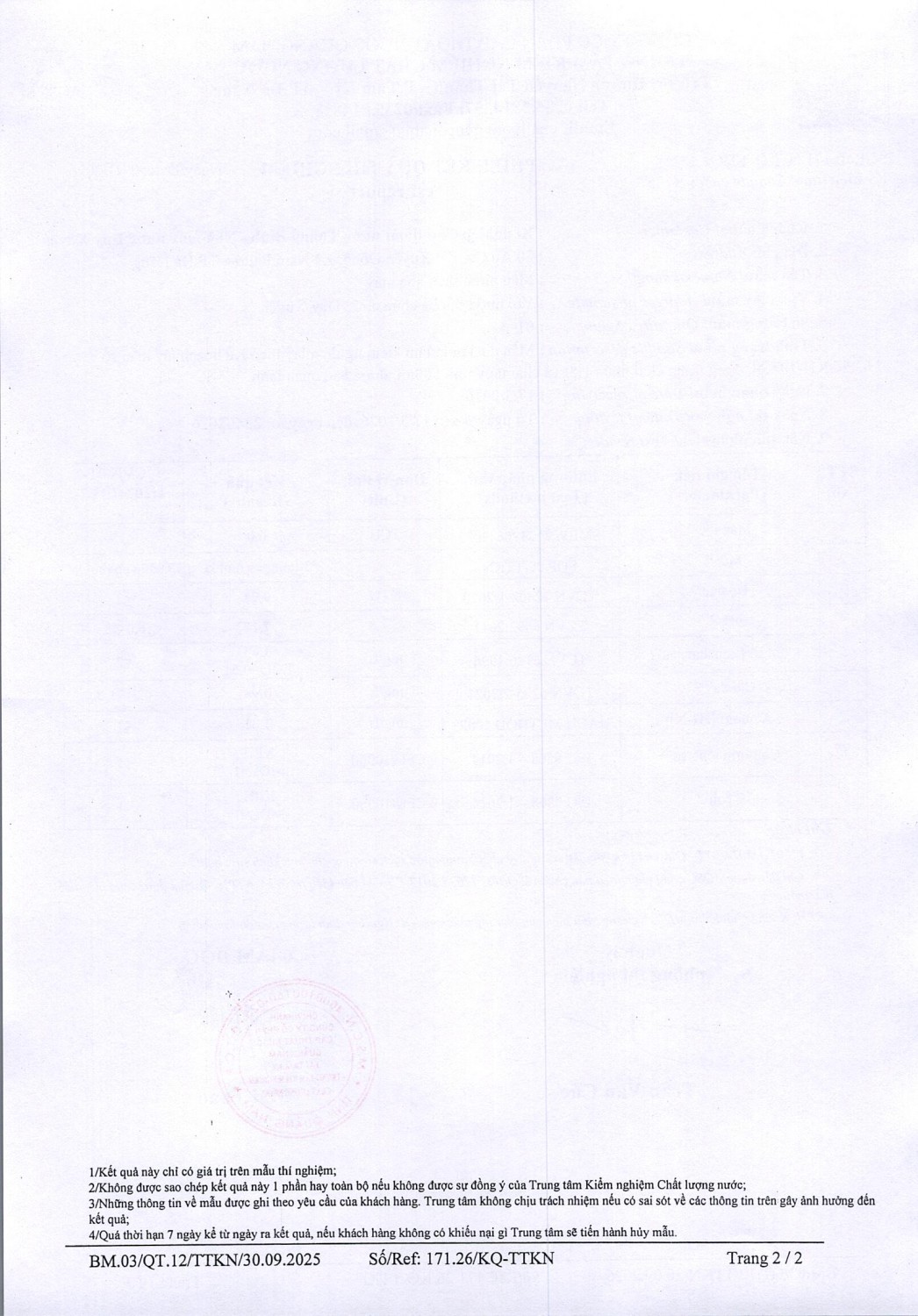 KẾT QUẢ CHẤT LƯỢNG NƯỚC XÍ NGHIỆP CTN THĂNG BÌNH - NMN DUY XUYÊN ĐỢT 2 THÁNG 3 NĂM 2026