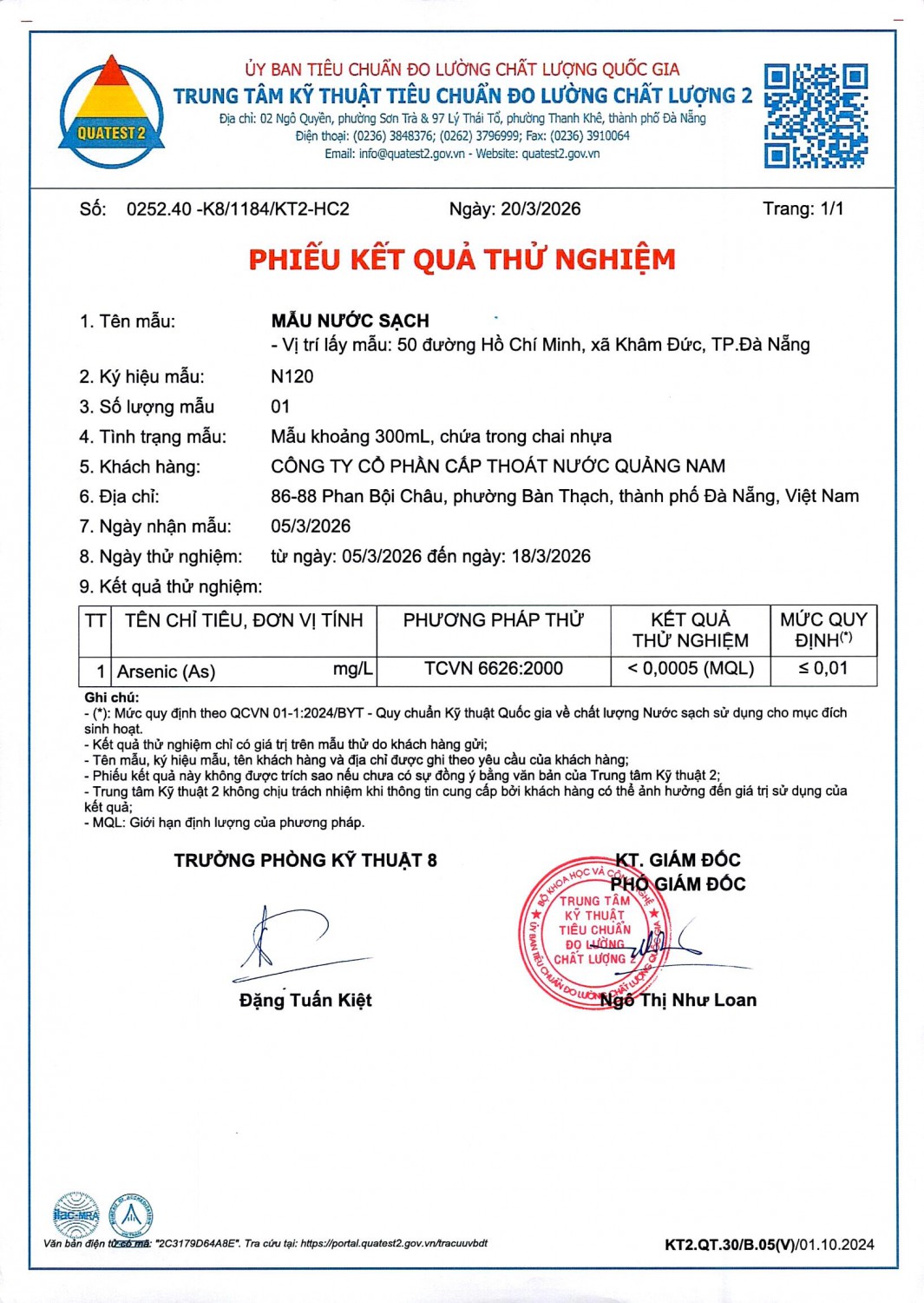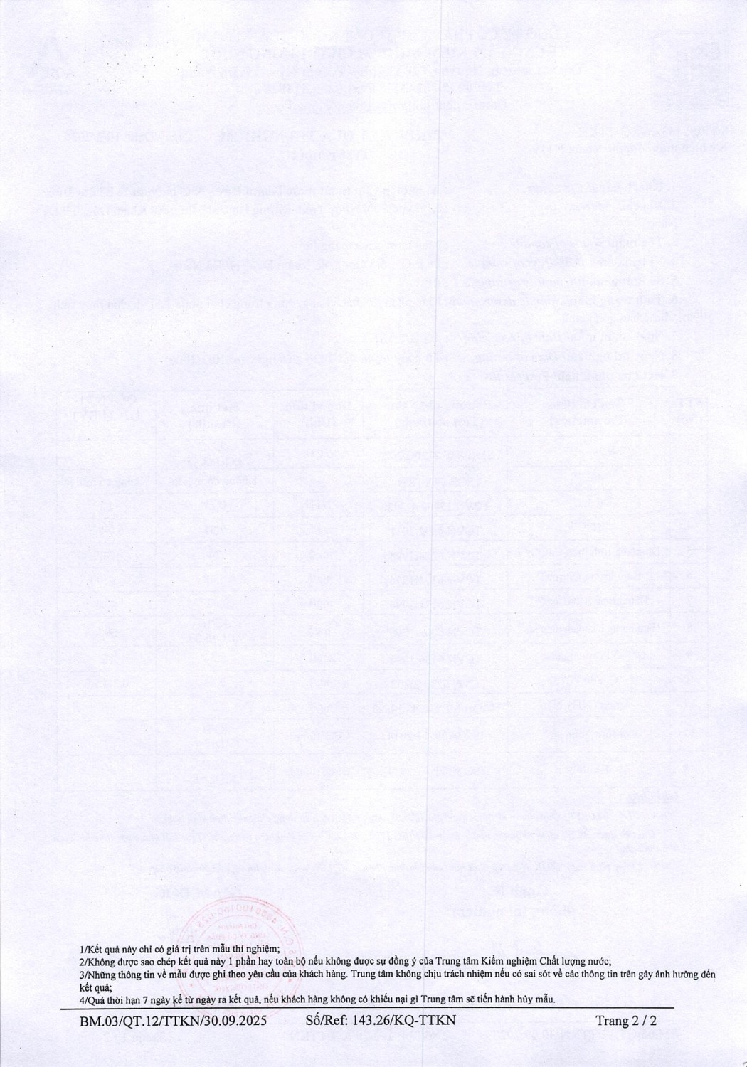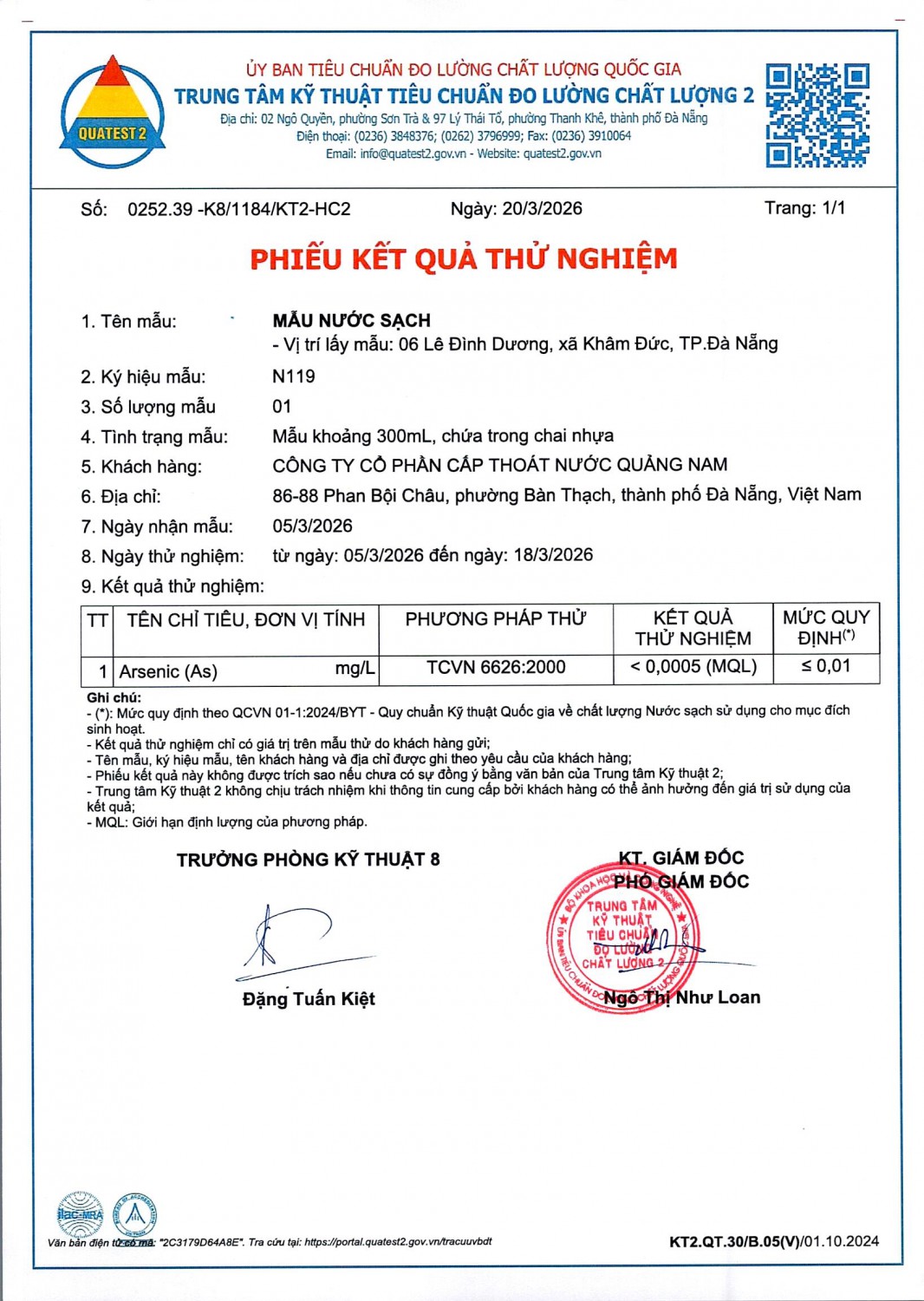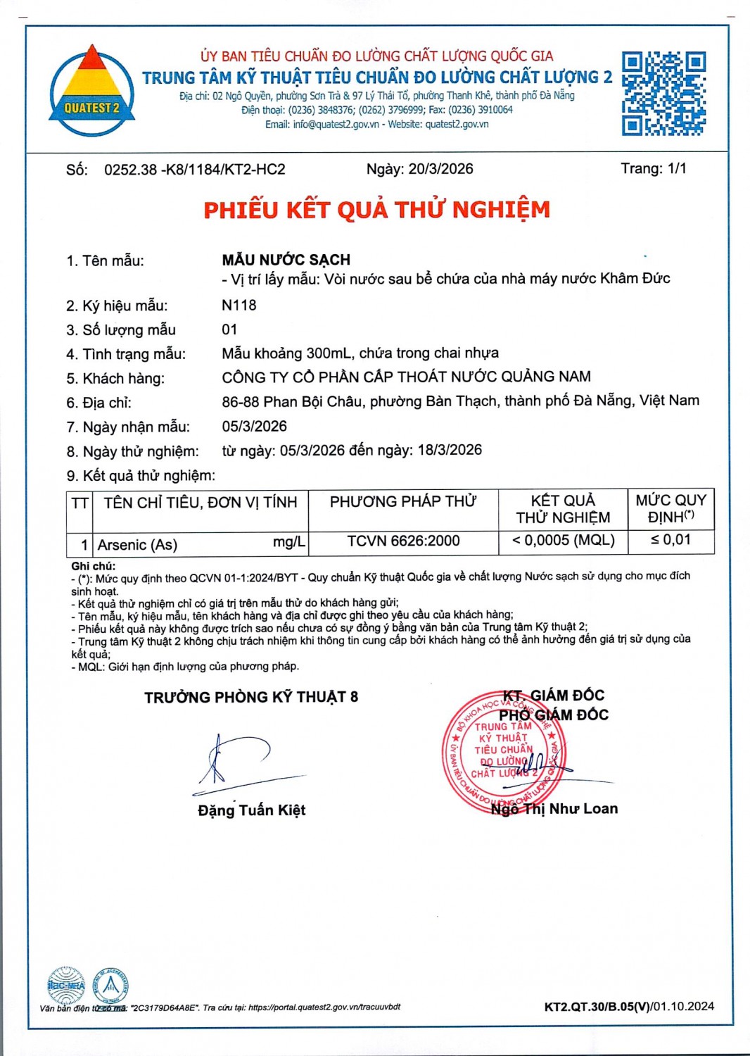 KẾT QUẢ CHẤT LƯỢNG NƯỚC XÍ NGHIỆP CTN KHÂM ĐỨC - NMN KHÂM ĐỨC ĐỢT 1 THÁNG 3 NĂM 2026