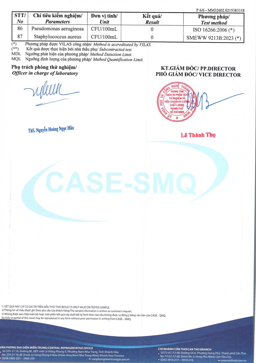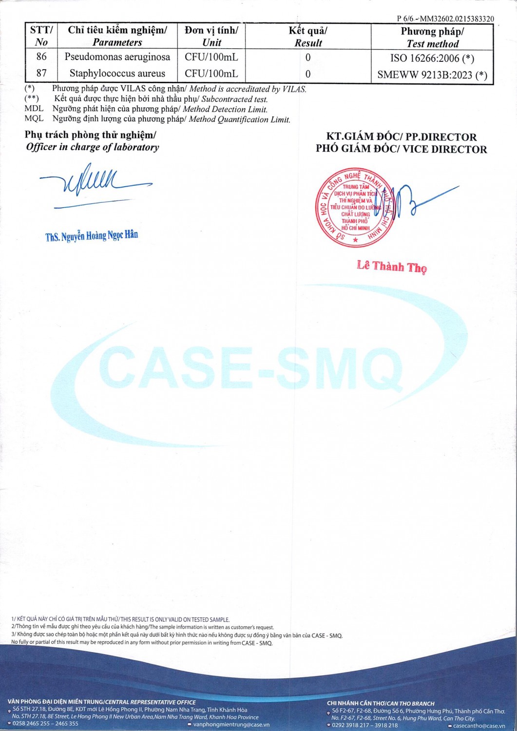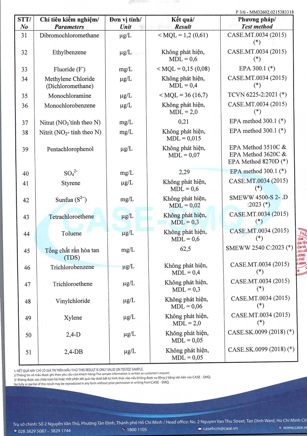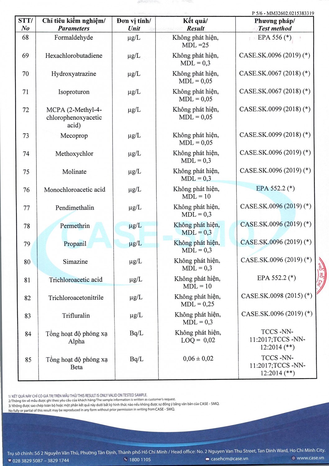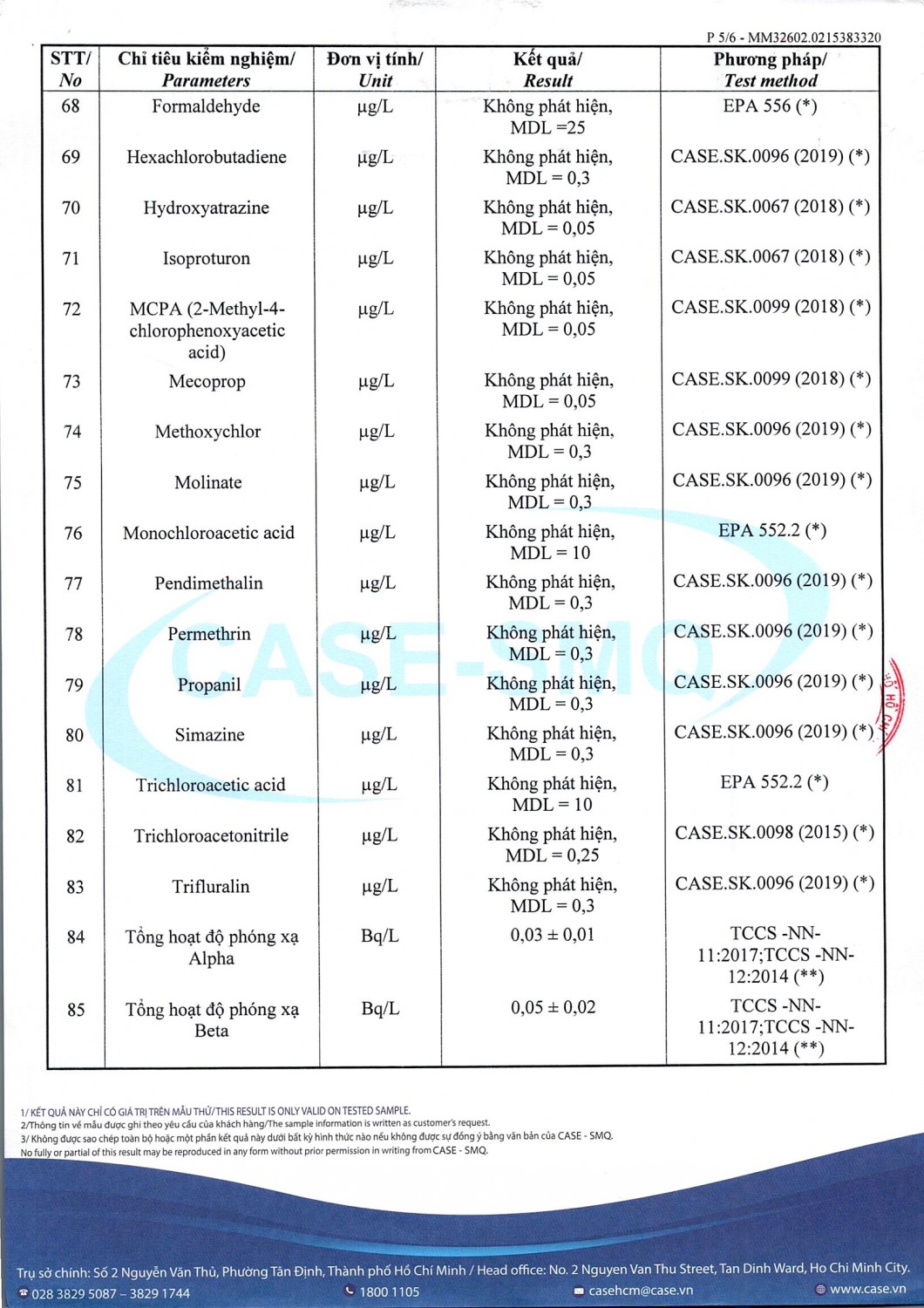 KẾT QUẢ CHẤT LƯỢNG NƯỚC CHỈ TIÊU B XÍ NGHIỆP CẤP THOÁT NƯỚC KHÂM ĐỨC - NHÀ MÁY NƯỚC NAM GIANG ĐỢT 1 NĂM 2026