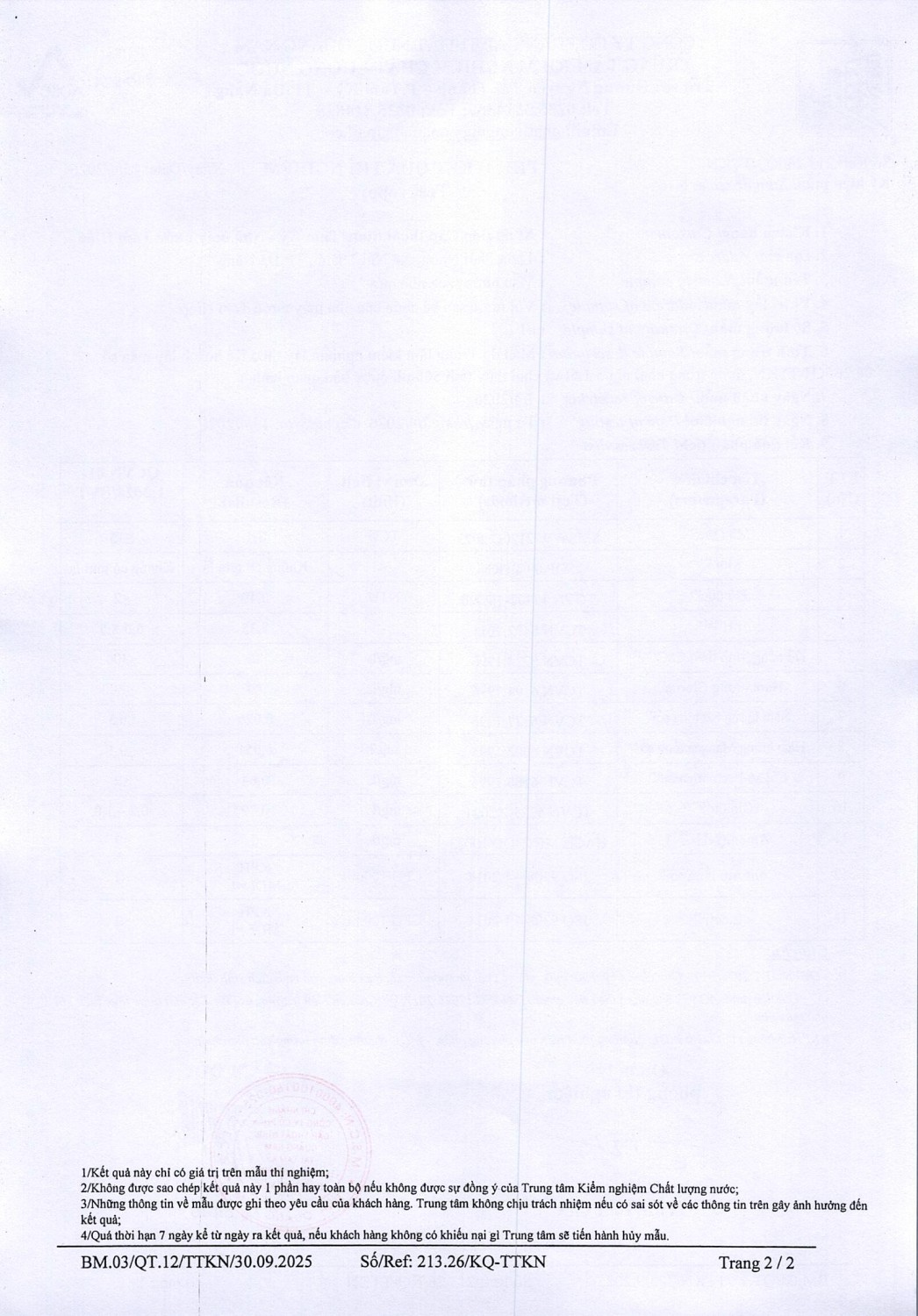 KẾT QUẢ CHẤT LƯỢNG NƯỚC XÍ NGHIỆP CTN TAM KỲ - NMN TAM HIỆP THÁNG 4 NĂM 2026