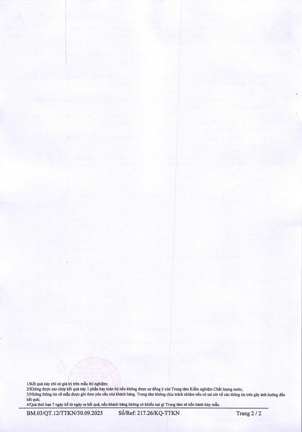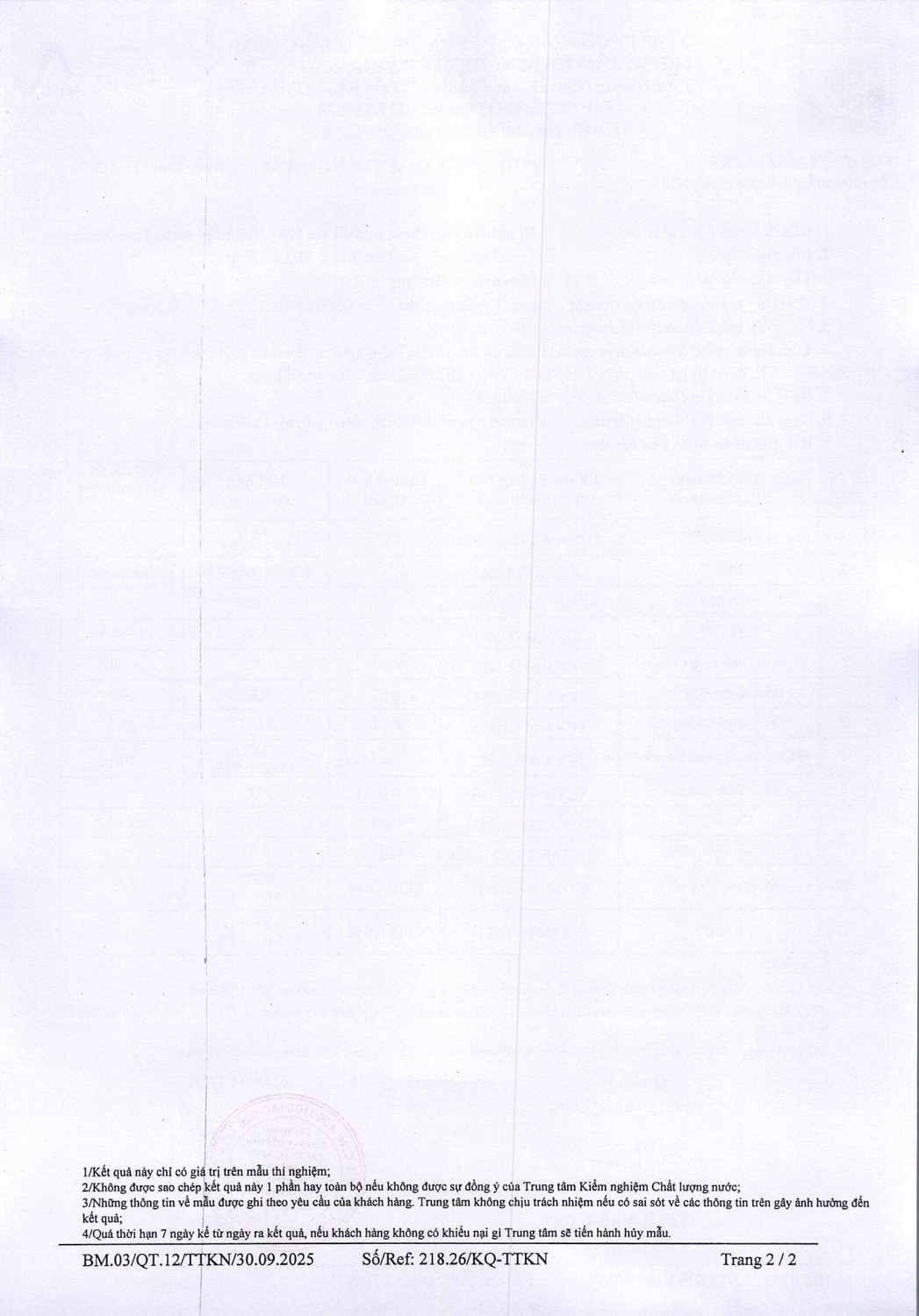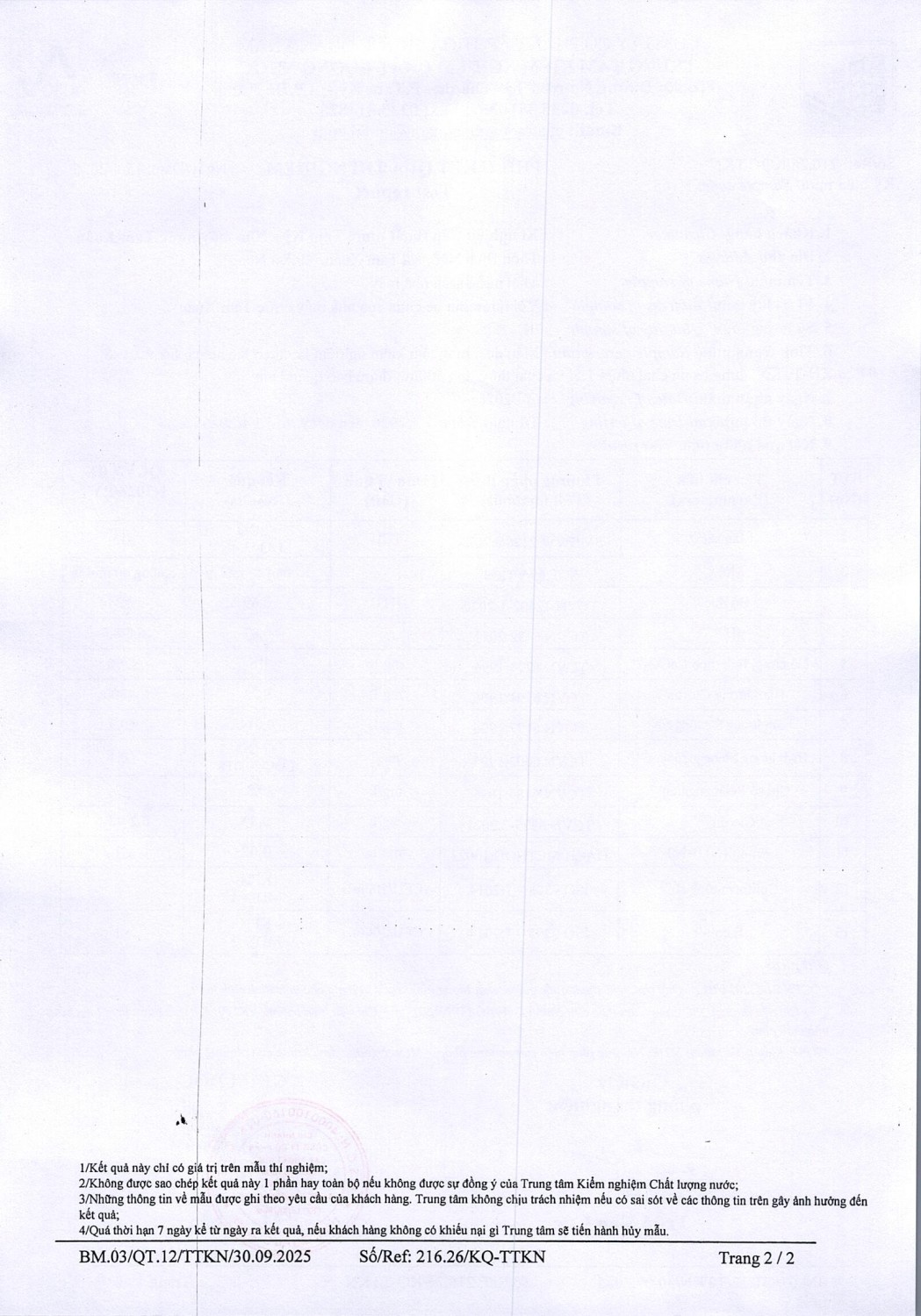 KẾT QUẢ CHẤT LƯỢNG NƯỚC XÍ NGHIỆP CTN TAM KỲ - NMN TAM XUÂN THÁNG 4 NĂM 2026