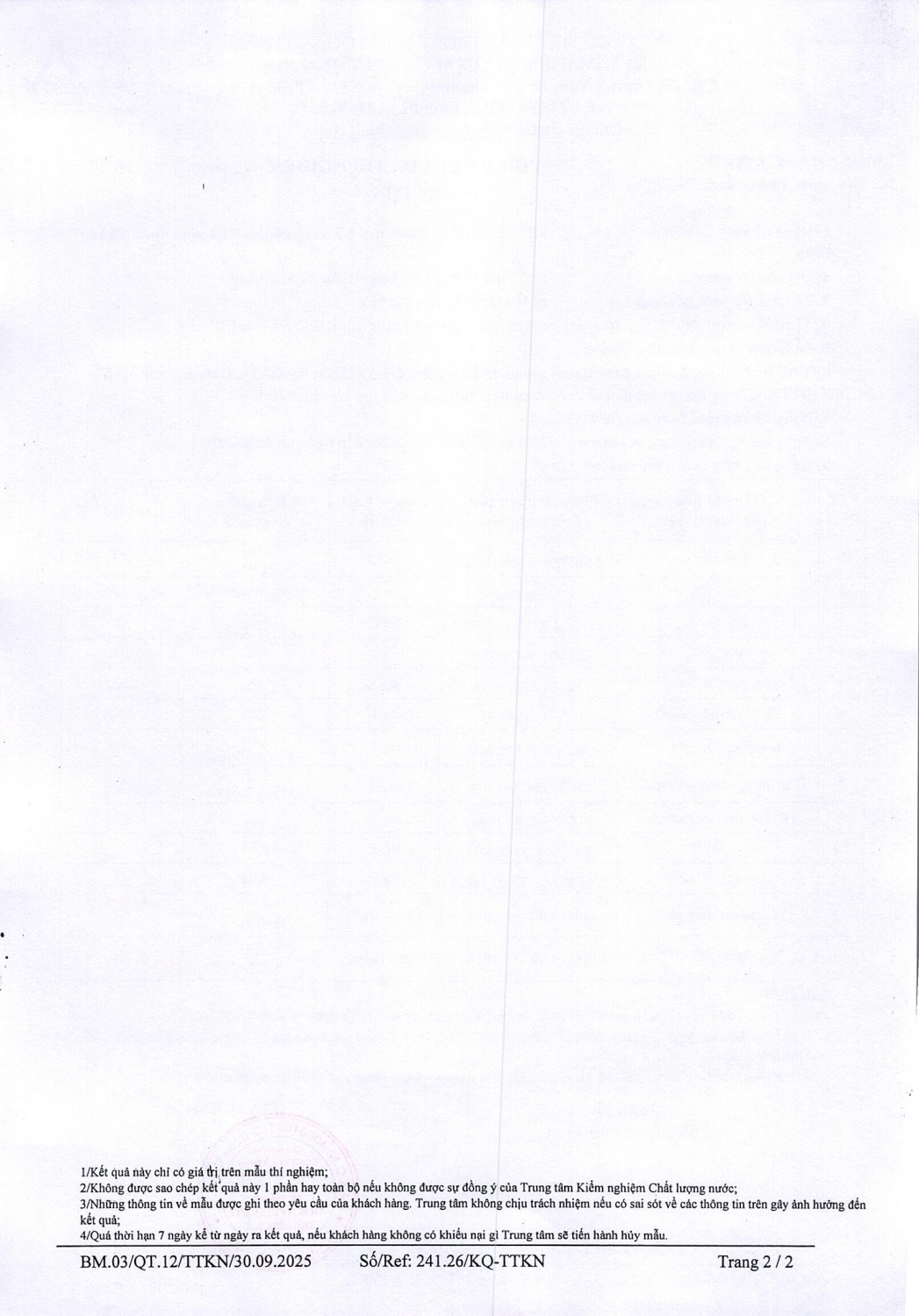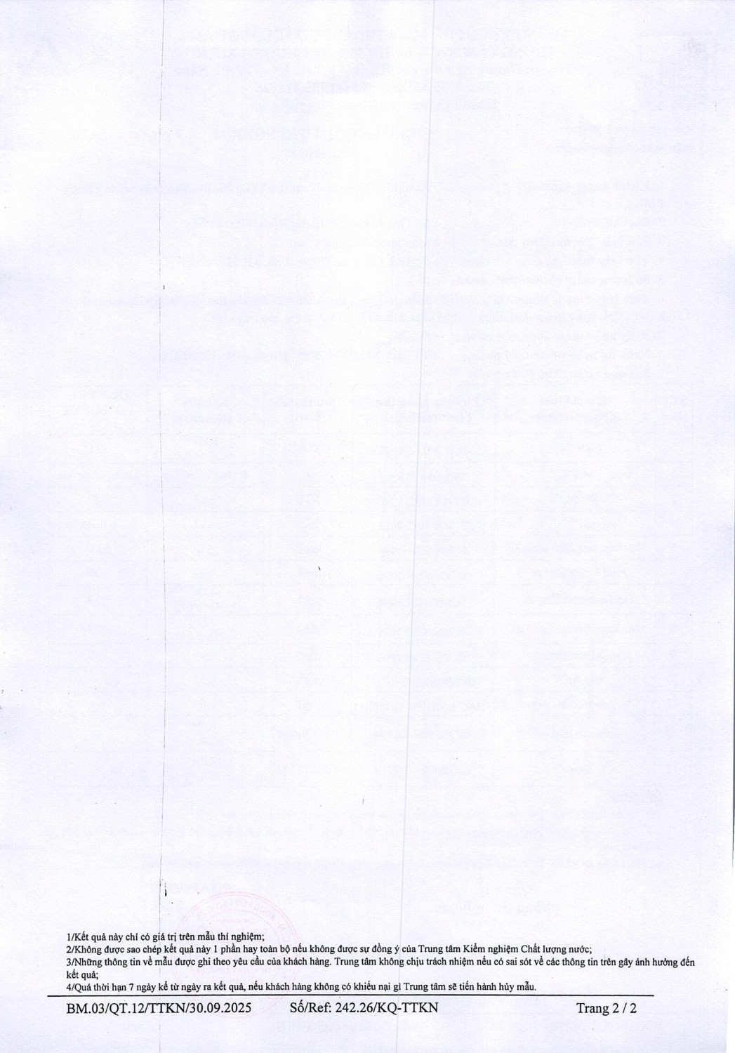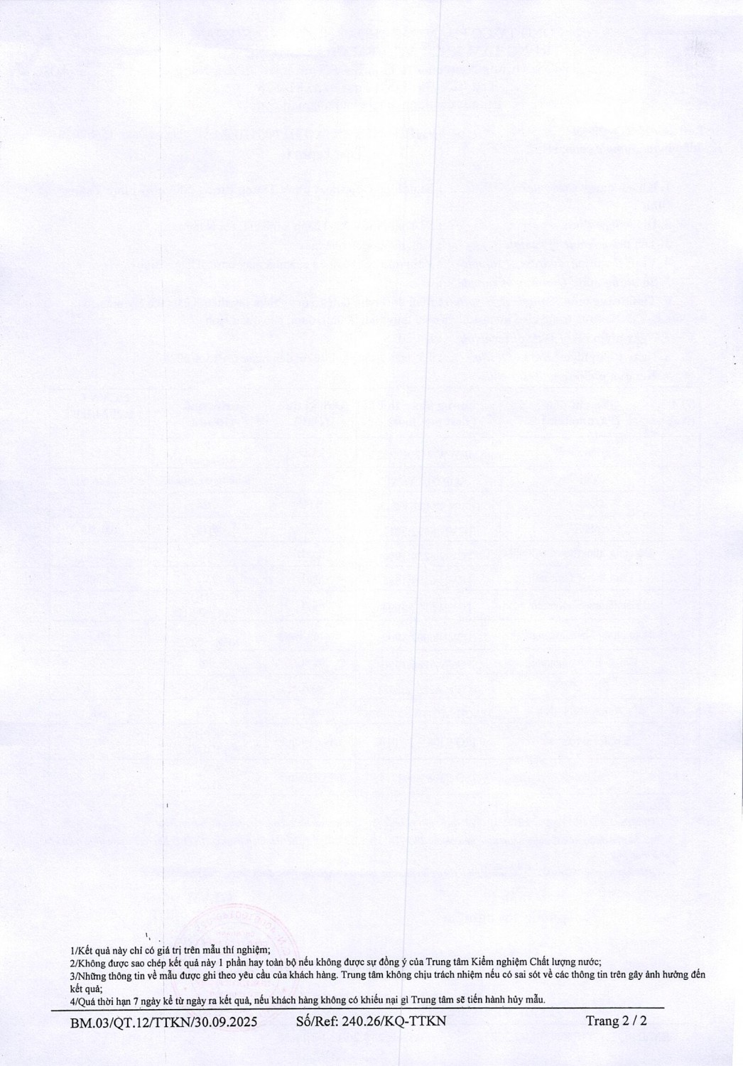 KẾT QUẢ CHẤT LƯỢNG NƯỚC XÍ NGHIỆP CTN THĂNG BÌNH - NMN THĂNG BÌNH THÁNG 4 NĂM 2026