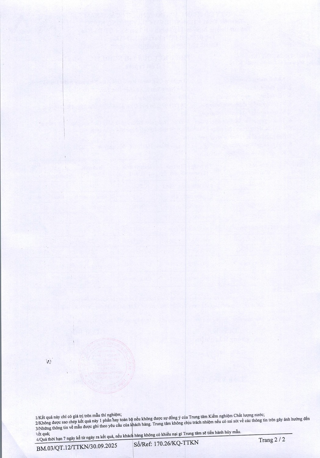 <h1>KẾT QUẢ CHẤT LƯỢNG NƯỚC XÍ NGHIỆP CTN HỘI AN - NMN ĐIỆN PHƯỚC ĐỢT 2 THÁNG 3 NĂM 2026</h1>