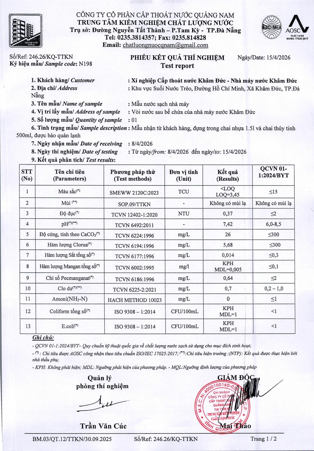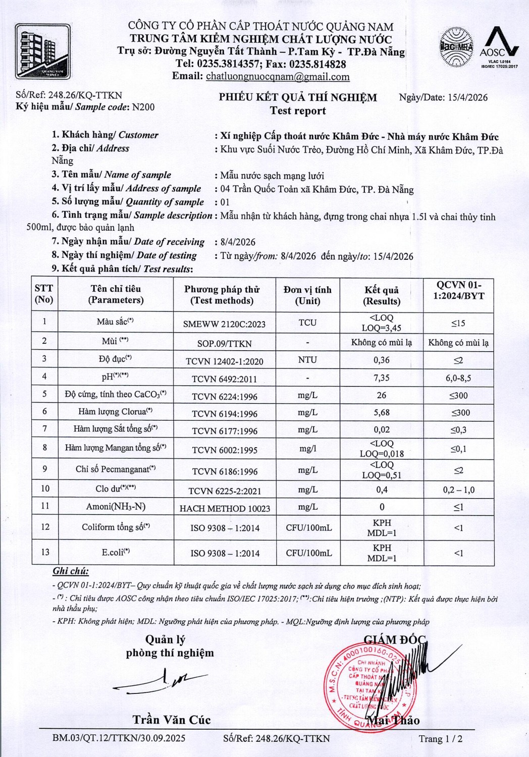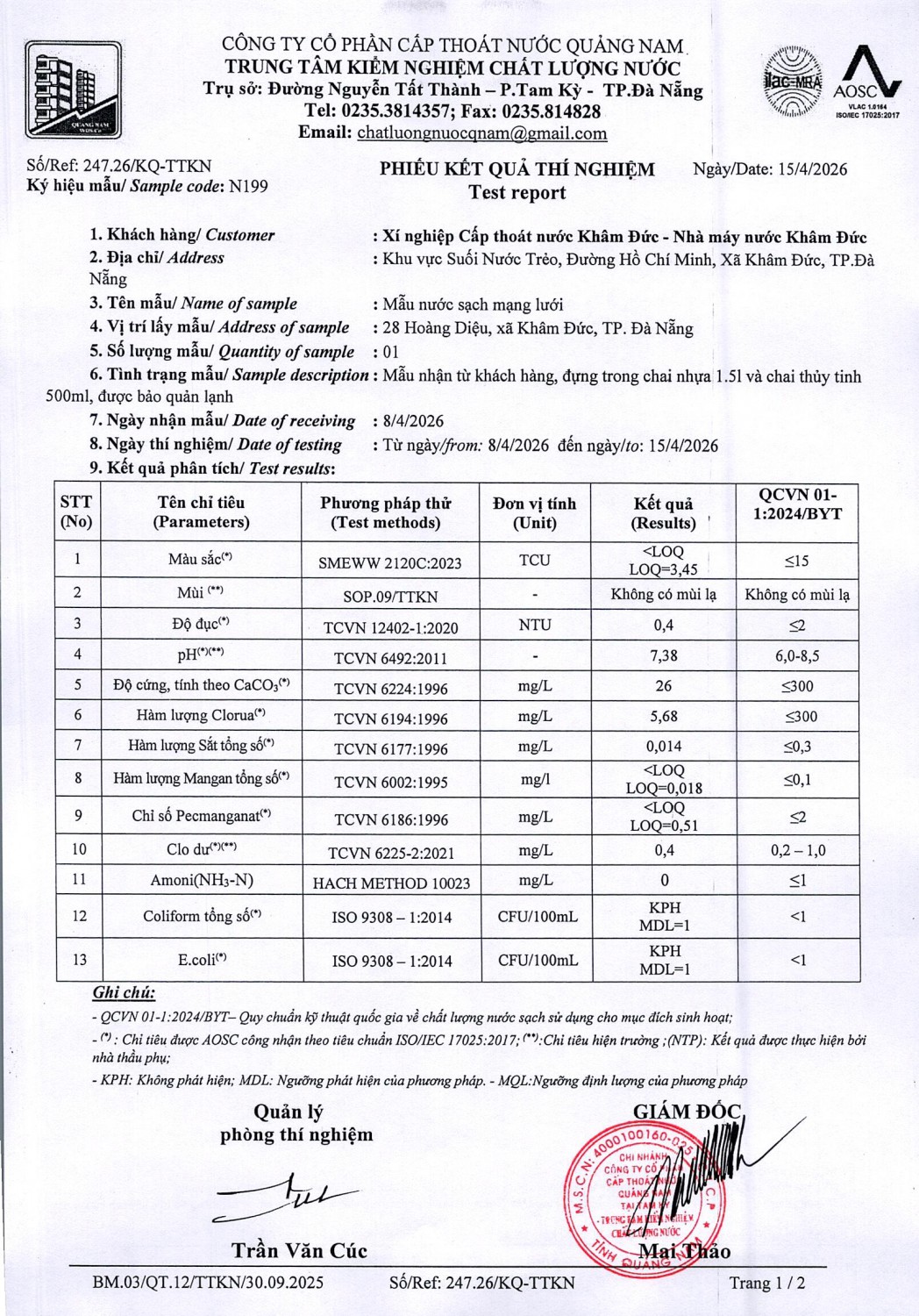 <title>KẾT QUẢ CHẤT LƯỢNG NƯỚC XÍ NGHIỆP CTN KHÂM ĐỨC - NMN KHÂM ĐỨC  THÁNG 4 NĂM 2026</title>