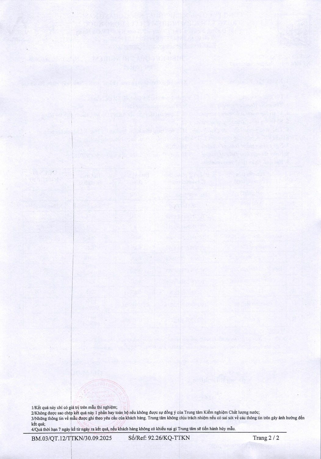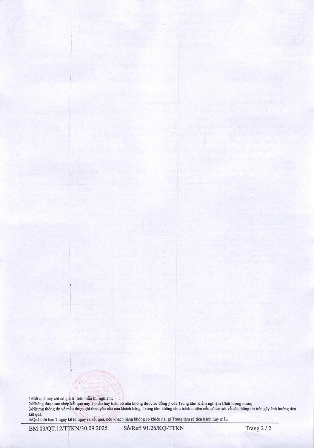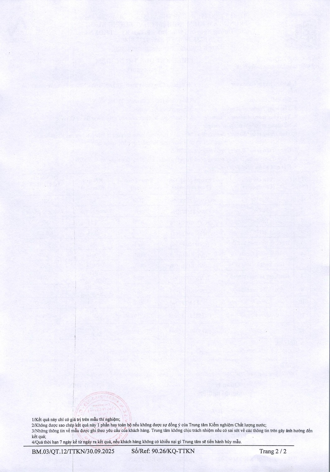 KẾT QUẢ CHẤT LƯỢNG NƯỚC XN CTN THĂNG BÌNH - NMN 3 XÃ GÒ NỔI THÁNG 2 NĂM 2026